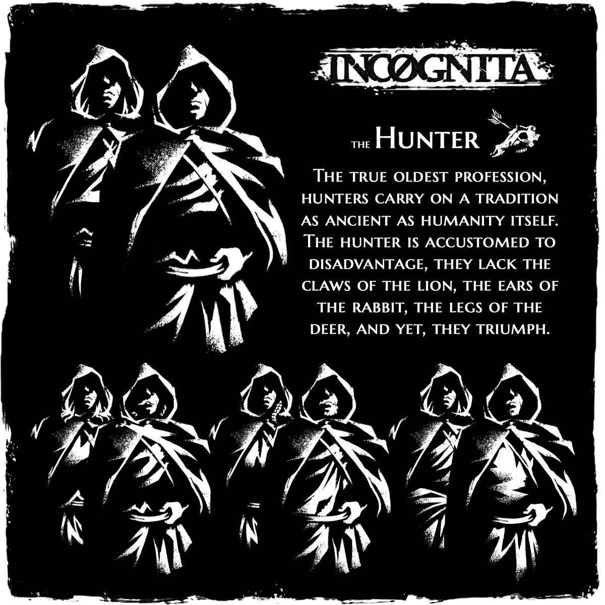 Hunters serve the party in two main ways, effectively dispatching creatures from afar and by supplying high quality pelts for them to sell. Striking from the shadows, Hunters are good at ambushing enemies and remaining undiscovered. Where Hunters struggle is in close range, when they lack the space and time required to fire their large bows.