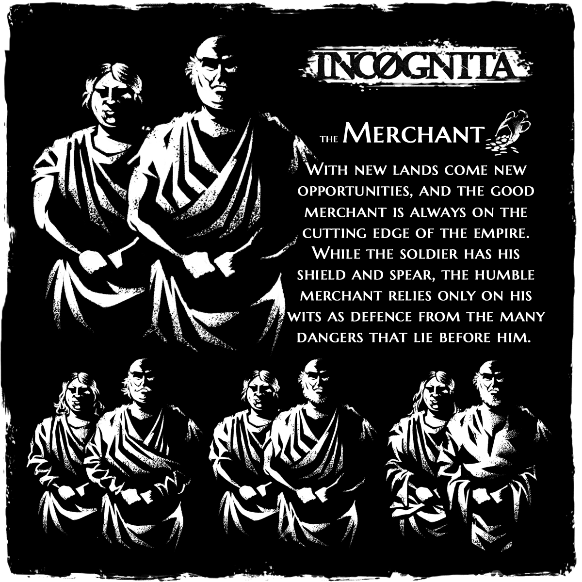 Merchants are very valuable due the their experience in persuation and barter, something that is sorely needed when most of the ne’erdowells a party will encounter are weak minded and easily impressed. This social skill comes at a cost however, merchants spend most of their lives in comfort and are therefor more effected by the toils of travelling the unknown.