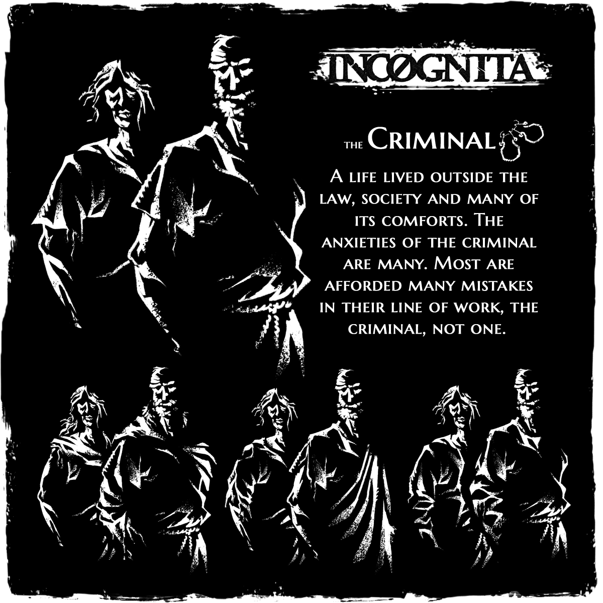 Criminals are wildcards, unable to be pinned down or pigeonholed into one role. They are people of extremes, acustomed to the discomforts of the world and at their best under circumstances most dire. Though their toughness and resiliance is a great bonus, criminals are not known for working well in groups.