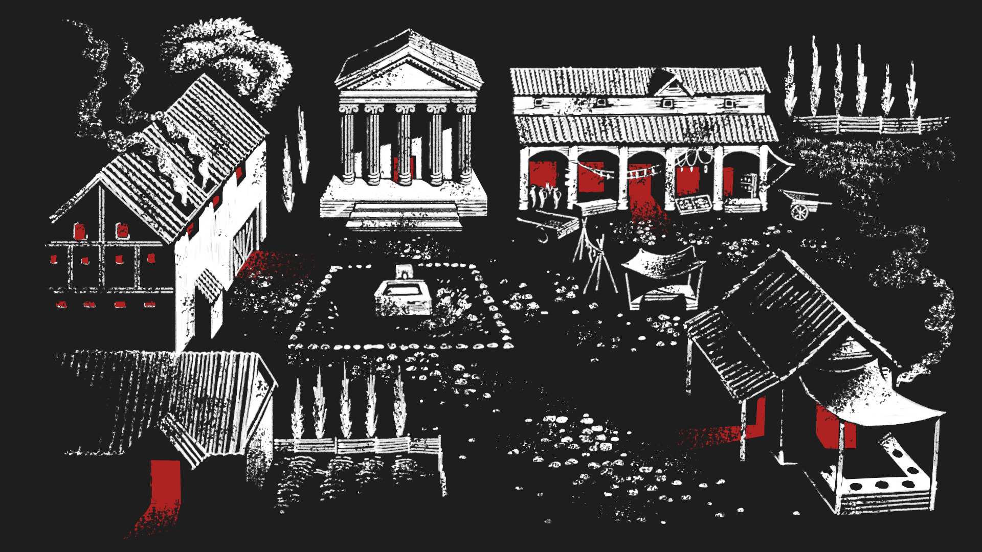 A Roman settlement. There the player can rest and recuperate their party members, recruit new ones, and buy goods and services.